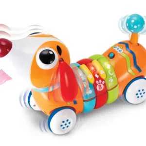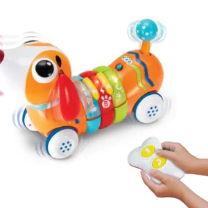 Catelusul cu telecomanda este o jucarie inovativa si captivanta, ideala pentru copiii cu varsta incepand de la 18 luni. Conceput pentru a introduce micutii in lumea literelor, formelor si a frazelor distractive, acest catelus aduce o experienta de invatare interactiva si plina de distractie. Modul de invatare este un aspect crucial al jucariei, oferind copiilor oportunitatea de a descoperi literele si formele intr-un mod captivant. In timp ce interactioneaza cu catelusul, cei mici vor putea sa apese butoanele de pe telecomanda pentru a activa efecte sonore si fraze distractive, consolidand invatarea intr-un mod interactiv si distractiv. Modul muzica este perfect pentru a aduce bucurie si veselie in timpul jocului. Melodiile vesele si efectele sonore distractive vor captiva atentia copiilor si ii vor incuraja sa exploreze si sa interactioneze cu catelusul intr-un mod creativ. Telecomanda cu infrarosu permite controlul miscarii inainte si inapoi a catelusului, oferind copiilor o experienta de joc dinamica si interactiva. In timp ce catelusul se misca, isi va intoarce capul, isi va misca coada si isi va balansa urechile, adaugand un nivel suplimentar de realism si implicare in joc. Prin explorarea functiilor diverse ale catelusului si prin implicarea in diferite scenarii de joc, cei mici isi vor imbogati cunostintele si vor invata sa interactioneze intr-un mod pozitiv si educativ cu mediul lor inconjurator.