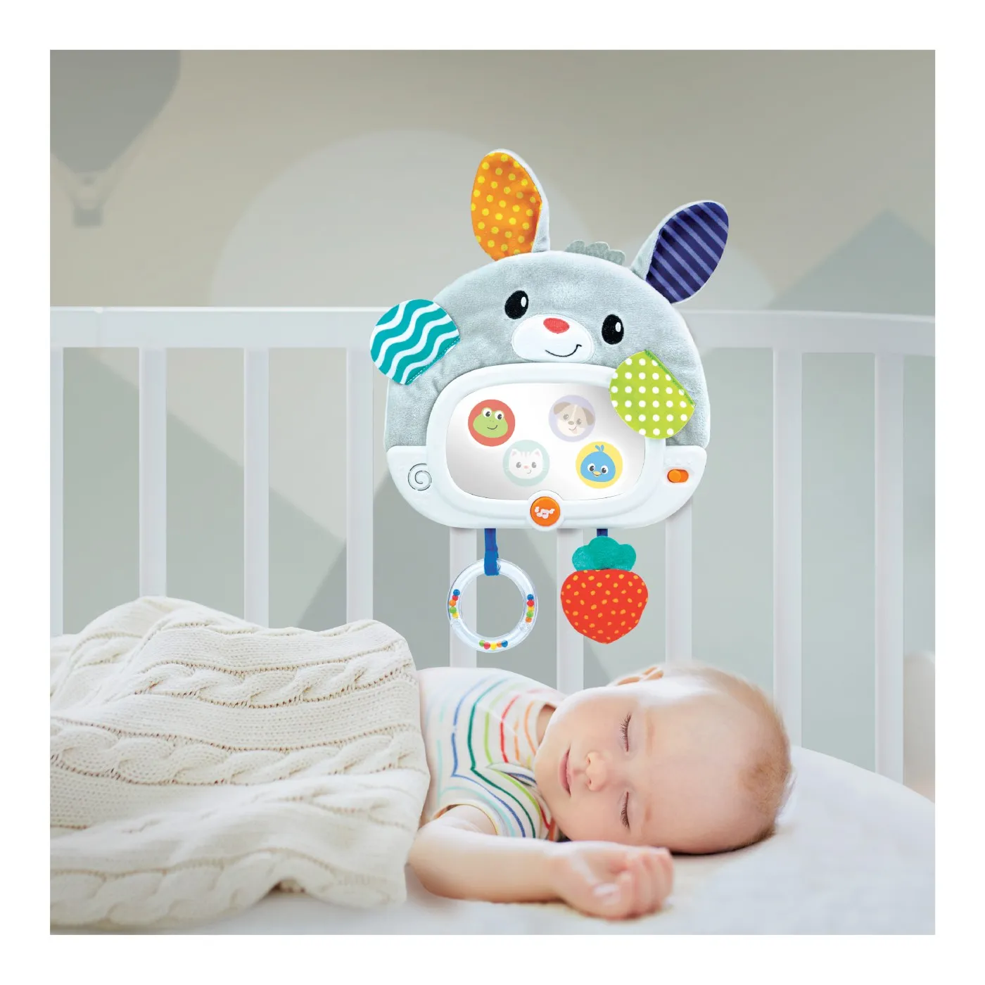 Jucaria Winfun Iepuras cu Activitati este perfecta pentru a insoti micutul in momentele de joaca si relaxare. Acest iepuras adorabil include o oglinda sigura pentru copii cu patru animalute si efecte luminoase care il vor fascina pe cel mic. Cu doua moduri de joaca, Zi si Noapte, jucaria ofera melodii vesele si sunete amuzante pe timpul de zi si melodii linistitoare si sunete din natura pentru un somn calm. Copilul poate trage de inelul de zornait sau de butonul pentru melodii pentru a activa sunetele si efectele luminoase. Datorita posibilitatii de a-l atasa la patut sau la carucior, acest iepuras devine un companion ideal atat pentru joaca, cat si pentru momentele de relaxare.