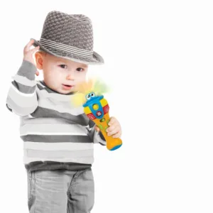 Microfonul cu sunete de animale, ritmuri variate si lumini este o jucarie captivanta si educativa pentru copiii cu varsta de 12 luni si peste. Proiectat pentru a stimula creativitatea si dezvoltarea auditiva a celor mici, acest microfon ofera o gama larga de functionalitati interactive care ii vor fascina pe cei mici. Una dintre caracteristicile distincte ale acestui microfon este varietatea sa de sunete. Microfonul este echipat si cu diferite ritmuri muzicale, oferindu-le copiilor posibilitatea de a crea propriile lor melodii si de a experimenta cu ritmul si tempo-ul. Acest aspect nu doar ca incurajeaza interesul pentru muzica, dar si sprijina dezvoltarea coordonarii motorii. Lumini colorate si interactive se activeaza in timpul utilizarii, transformand experienta auditiva intr-una vizuala si atragatoare. Aceasta caracteristica nu numai ca stimuleaza simturile vizuale ale copiilor, dar si imbunatateste experienta generala de joaca, oferindu-le o interfata distractiva si captivanta. Microfonul are capacitatea de a amplifica vocea copilului atunci cand tasta este tinuta apasata. Functia de agitare pentru activarea sunetelor si luminilor adauga o doza de imprevizibilitate si distractie. Copiii pot sa agite microfonul pentru a declansa efecte sonore si lumini, ceea ce ii incurajeaza sa exploreze si sa interactioneze in moduri diferite cu jucaria lor preferata.
