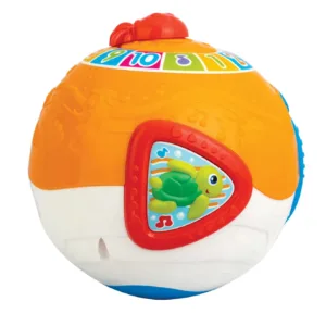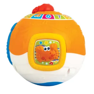 Mingea interactiva ocean este o jucarie perfecta pentru copiii cu varsta incepand cu 6 luni si peste. Conceputa pentru a stimula simturile micutilor, aceasta minge ofera o experienta de joc distractiva si educativa. Misca se poate misca si clatina singura, ceea ce incurajeaza bebelusul sa o urmareasca si sa isi dezvolte abilitatile motorii. Jucaria include si meduze care se rotesc si 3 butoane interactive. Aceste butoane reprezinta un crab, o broasca testoasa de mare si o stea de mare luminoasa. Copiii pot apasa butoanele pentru a activa diferite efecte sonore si luminoase, ceea ce contribuie la dezvoltarea abilitatilor lor cognitive si de coordonare ochi-mana. Aceasta interactiune ii va ajuta sa invete despre animalele marine. In plus, mingea este echipata cu sunete distractive si melodii vesele. Acestea sunt create special pentru a stimula auzul si pentru a adauga o nota de bucurie in timpul jocului.