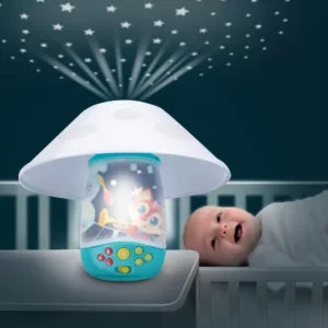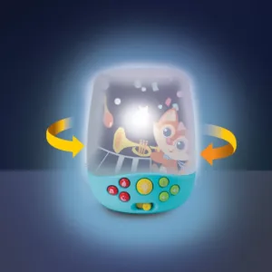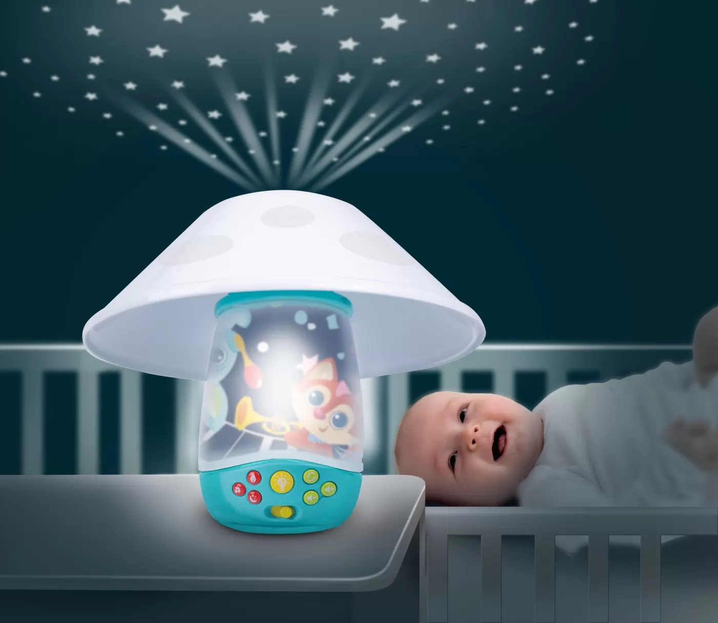 Proiectorul mobil 3-in-1 ofera o experienta reconfortanta si placuta in timpul somnului. Dispozitivul include trei moduri diferite cu pana la 30 de minute de muzica in primul mod, proiectorul poate fi atasat la patut, unde cei mici se pot bucura de prezenta a trei prieteni simpatici din padure care se rotesc usor. In al doilea mod, proiecteaza un cer instelat pe tavan, ajutand la crearea unei atmosfere linistite pentru somnul bebelusului tau. Stelele stralucitoare si miscarea lor usoara pot fi o sursa de captivare si fascinatie pentru cei mici inainte de culcare. In modul trei, proiectorul se transforma intr-o lampa de veghe, oferind lumina blanda si confortabila pentru a crea un mediu cald si sigur. Aceasta lumina poate fi lasata aprinsa peste noapte pentru a oferi confort si siguranta bebelusului in timpul somnului sau. Fiecare mod de functionare include o selectie de melodii vesele. In modul de noapte, proiectorul reda melodii linistitoare, sunete din natura si sunete amuzante care sunt concepute pentru a calma bebelusul si pentru a-l ajuta sa adoarma in mod natural si relaxat. Aceasta jucarie este ideala pentru copiii de toate varstele mici, incepand cu nou-nascutii, si poate fi o parte esentiala a ritualului lor zilnic de culcare pentru a le oferi un somn odihnitor si linistit.