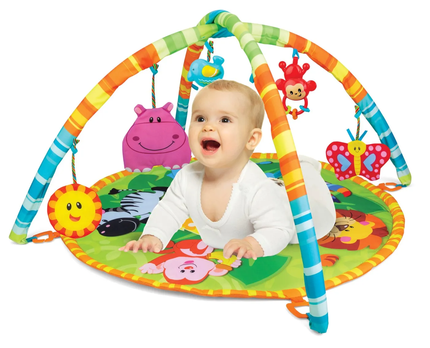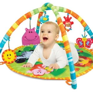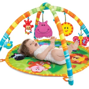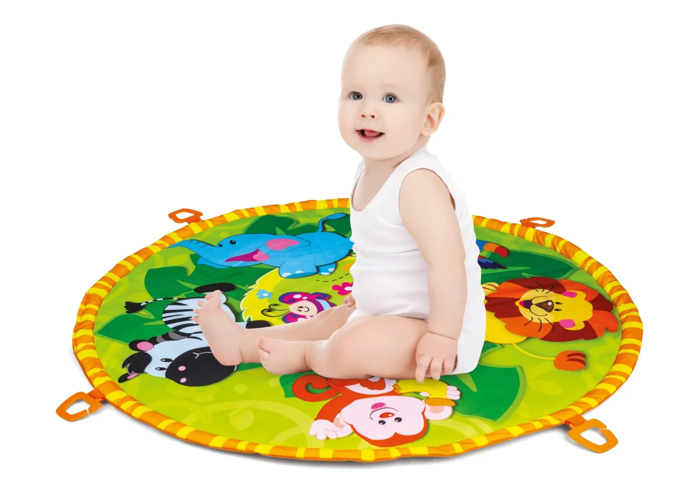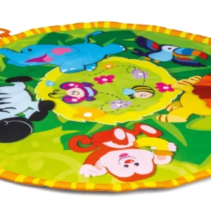Salteluta de activitati este un spatiu de joaca perfect pentru copiii inca de la nastere, oferind oportunitati multiple de joaca si invatare. Aceasta salteluta versatila este conceputa pentru a oferi confort si siguranta in timpul diferitelor etape de dezvoltare ale bebelusului, fie ca este vorba de stat pe spate, timpul petrecut pe burtica sau distractia in pozitie sezut. Arcada cu jucarii amuzante si dragalase atarnate incurajeaza dezvoltarea coordonarii mana-ochi si a abilitatilor motorii fine. Jucariile sunt colorate si au diverse forme si texturi, captand astfel atentia copilului si stimulandu-l sa se intinda si sa le apuce. Salteluta este ideala pentru diverse etape de joaca Stat pe spate Copilul poate explora jucariile atarnate, stimulandu-si simtul vizual si coordonarea mana-ochi. Timp pe burtica Salteluta ofera suport si confort, incurajand bebelusul sa isi ridice capul si sa isi intareasca muschii gatului si ai spatelui. Distractie in pozitie sezut Pe masura ce copilul creste, poate sta in pozitie sezut si poate interactiona mai activ cu jucariile, dezvoltandu-si astfel abilitatile motorii si cognitive. Salteluta de activitati Jungle Pals are un design atractiv si culorile vibrante ce adauga un plus de veselie oricarei incaperi. Aceasta salteluta este un ajutor de nadejde pentru parinti, oferind un spatiu sigur si distractiv unde copiii pot explora, invata si se pot dezvolta armonios.