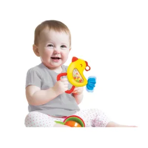 Zornaitoarea in forma de pasare este un companion perfect pentru bebelusi, fiind conceputa pentru a stimula simturile si a incuraja dezvoltarea motorie. Aceasta jucarie colorata si luminoasa atrage imediat atentia celor mici. Cu o coada care se invarte si un maner usor de prins, zornaitoarea este ideala pentru mainile mici ale bebelusilor. La fiecare agitare, jucaria emite sunete care ajuta la dezvoltarea simtului auditiv al copiilor. Designul ergonomic al manerului face jucaria usor de tinut si de manipulat, incurajand astfel dezvoltarea coordonarii ochi-mana si a abilitatilor motorii fine. Coada rotativa a pasarii adauga un element suplimentar de distractie, oferind copiilor sansa de a explora si descoperi prin joaca. Recomandata pentru bebelusi incepand cu varsta de 3 luni, aceasta zornaitoare in forma de pasare contribuie la dezvoltarea armonioasa a copiilor prin stimulare senzoriala si joc activ. Jucaria poate deveni rapid una dintre preferatele micutilor datorita designului sau atractiv si functionalitatilor diverse. Este perfecta pentru a fi introdusa in rutina zilnica a bebelusilor, oferindu-le ocazia de a descoperi noi sunete si texturi intr-un mod interactiv si sigur. O alegere ideala pentru orice parinte care doreste sa ofere copilului sau un inceput plin de culoare si veselie in explorarea lumii inconjuratoare.